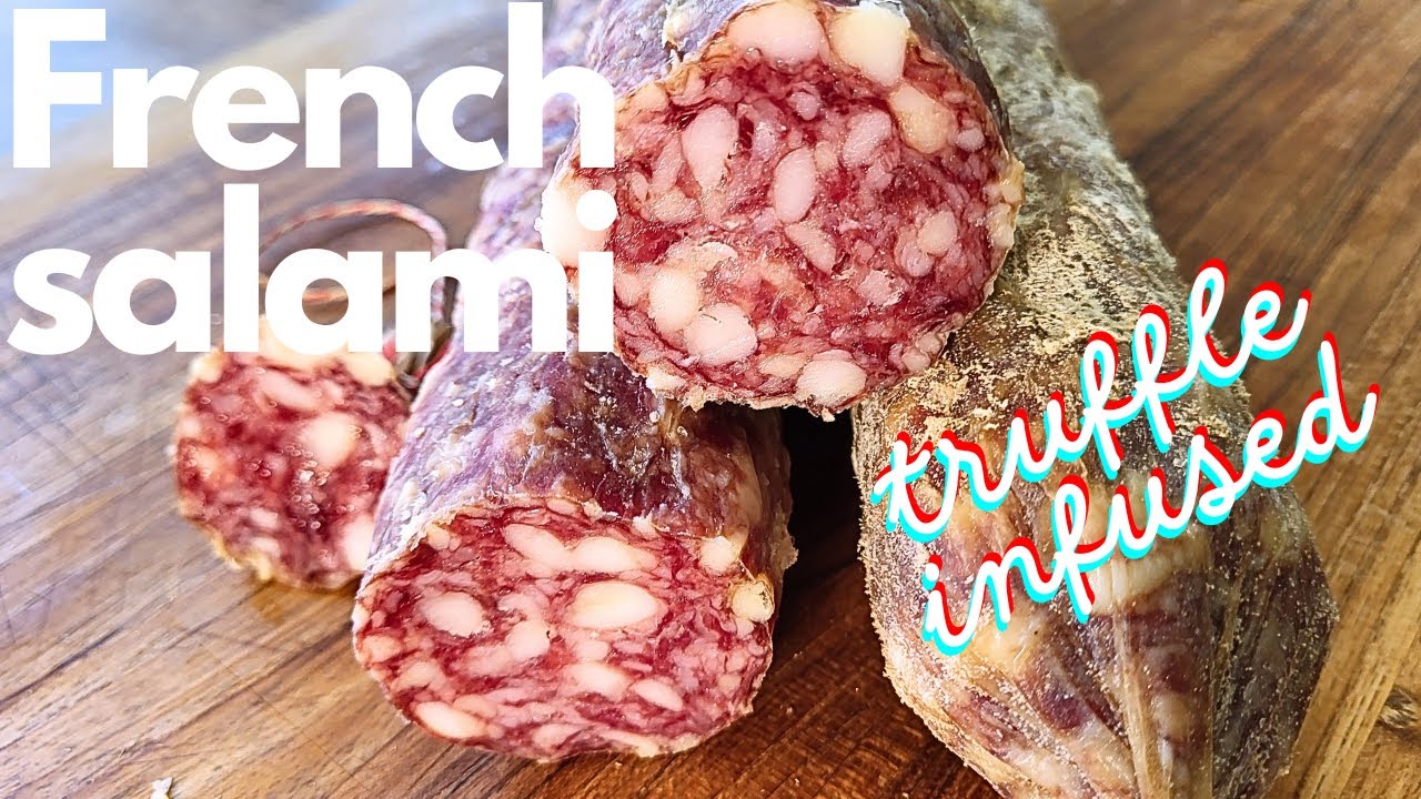 welcome to the channel my name’s Greg I’m really excited about the video I have for you today I’m making SAU snd arls which basically is a super simple salami this sausage suay ARS not only did it come out really good but this has a secret ingredient traditional SAU s ARS has no spices so it really relies on the quality of the meat and the manufacturing techniques so manufacturing techniques basically means keeping everything really cold while working on it making sure your cutter blades are sharp so that everything comes out well defined I’m using the birkshire Hampshire cross pig that my friend raised using all local feed little bit of beef in here is organic grass-fed beef from a local Farm the thing that makes this so special makes me so excited about this is that this fat is infused with truffles that’s right truffle infused pork fat from local Oregon truffles let me show you how I Infuse the pork fat and then I’ll get into showing you how I made this salami let’s do this we have here is some Oregon white chuffles my neighbor gave me I’m really excited about these I really wish I could invent smell of vision cuz these smell amazing generally you don’t cook with Truffles and actually you don’t mix them that much with things you more use them to infuse their flavor is how they’re typically used let check out what I have here I’ve cubed up pork fat relatively small cuz uh the more surface area the better it will be for this infusion process so I don’t have a great way of hanging these shuffles in here I put this container paper towel on top just to keep these truffles elevated what I’m doing I’m going to take a fresh paper towel I’m just going to wrap each one of these up in its own towel so they’re not touching each other stuffles have a very very short shelf life take one more paper towel wrap them all up in that one to hold them in place that’ll work my friend suggested poking holes in the Tupperware putting that in the cooler holes for some air but then you put them in a cooler and close the cooler so that’s going to cut off the air so I did some research online and I think as long as I replace this towel a couple times a day at least once every 24 hours I’ve been doing it once every 12 hours I still get a few days out of this Shuffle before it starts to get before it starts to go funny close that I’m going to put this in the refrigerator I’m going to change that paper towel every 12 hours hopefully it’ll get a few days this has been one day this is my second paper towel change and I can tell you I think this pork Fat’s already starting to have a truffle smell so I’m really excited to make a salami out of this pork fat okay into the refrigerator you go truffles don’t last very long especially in this non-air environment but I changed out my paper towel couple times a day for the first three days and for the last day I put it in St my son’s idea thought it would help help it maybe last a little longer draw out some of the moisture not sure but they they feel firm enough to still use and this fat here definitely confused with the Truffle flavor so what I’m going to do going to take some out for the salami I’m making now and I’m going to vacuum seal some of it to use later and I’ll freeze that again and yes you’ll notice there’s three truffles now started with four now there’s three the one of them got a little soft so I pulled that out now my friend who gave me these said that after I’m done infusing what he likes to do is to microplan them into some butter to put on bread or put them in the middle of some Bree cheese so I’m going to microplan these onto some Bree cheese [Music] here oh yeah I don’t even know how much to put on there it seems like maybe a lot yeah that’s kind of a bit like I’m going to put the rest into some [Music] butter I like to mix up some mold 600 otherwise known as penicilium nenus and I like to mix this up the night before I’m going to use it gives it a little time to wake up and it’s just going to take about a/4 teaspoon notice I’m pouring it out I’m not sticking this not sticking my spoon into the mold because I don’t want to contaminate it so when I’m done I just fold it back up to tape it like to try to make sure I get air out then I vacuum seal it and keep it in the freezer then I add about a/4 cup of clean fresh water I have good well water if you’re working off of like a municipal system probably best to use distilled water chlorine will kill this so I’m just going to cover that set it aside it’ll be ready in the morning I’m going to start with some pork I’m using a picnic ham I recommend getting a good quality pork for any kind of salami since you’re going to have a bit of time invested in it and the salami or salumi really concentrates the flavor as it dries so I definitely would recommend getting the best pork you can for any salami but this one in particular is a very basic salami there’s no spice profile just salt a little bit of sugar to feed the starter culture and that’s it so starting with a really quality animal is really important for this I’m going to keep just cutting this into pieces that fit into my grinder and I’ll be back using the picnic ham and this is pretty fatty for a picnic ham that’s why I’m reducing the percentage of a fat I’m using as pure fat and this might be a little fatty for a salami but I really like fat fat flavor going to add about 1/4 teaspoon of my te SPX starter culture about 20 to 30 minutes before I want to use it then I like to just tape that back up little piece of tape holding that down going to put that in a vacuum seal bag and refreeze it I like to use these it’s like a hybrid zip lock bag it’s got that little if you have one of these tools this will suck the air out so it’s it’s pretty reusable and I’m going to add about 1/4 cup of clean water again like the mold if you’re on a wa y