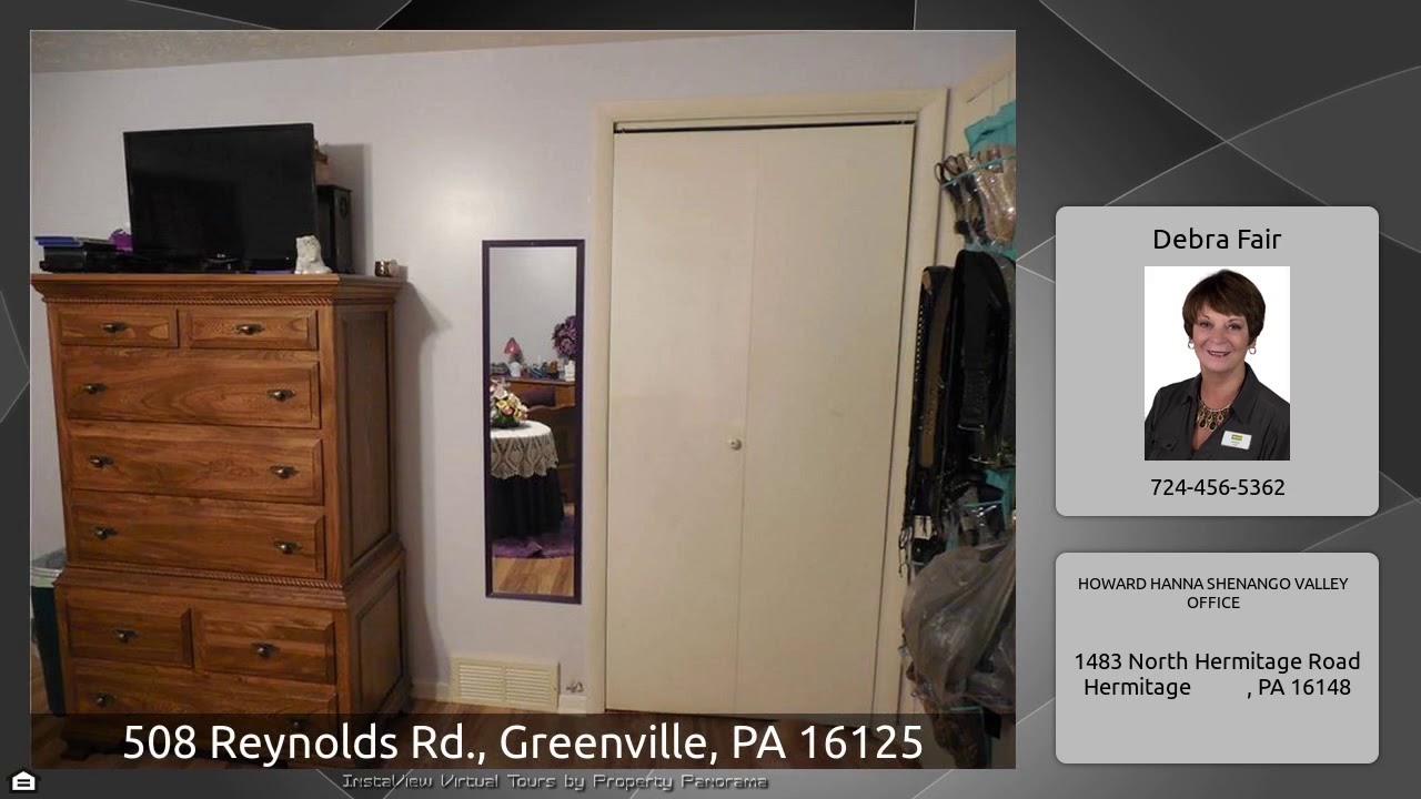 The Virtual Tour for the property at 508 Reynolds Rd., Greenville, PA 16125 listed for $165,000: Other homes for sale by Debra Fair of HOWARD HANNA SHENANGO VALLEY OFFICE: This is a large raised ranch with 3 closets in the master a full bath and a double closet in bedroom 2 . Vaulted ceilings in the living room and dining room make this great. The kitchen is open to the dining room that has French doors to a nice deck. The family room is huge and has sliding doors to the back yard and a wood burning fireplace. The laundry room also has a walk-out to the back yard. Two and a half acres gives …