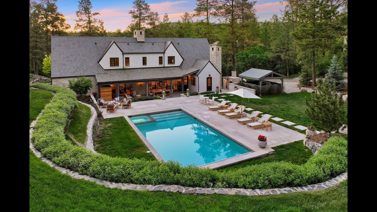 Welcome to an enchanting French Chateau, an architectural marvel in The Village at Castle Pines. This exquisite estate, with bespoke Belgian finishes, epitomizes luxury and tranquility. Heated driveways lead to this residential masterpiece, reflecting a five-year architectural journey through Belgium. Every detail, from rich color tones to meticulous materials, infuses comfort and ease throughout the home. The main floor features a gourmet kitchen with top-of-the-line appliances, honed Carrera marble countertops, and a spacious walk-in pantry. A cozy breakfast nook with a wood-burning fireplace connects to an outdoor haven. The great room, anchored by a grand limestone fireplace, is framed by custom metal and glass doors that unveil the picturesque backyard. The main level also includes a formal dining room with custom lighting, a serene primary suite with a spa-like bath, and an elegant office/den. Upstairs, four generous bedroom suites with ensuite baths and walk-in closets, a game room, and a laundry room complete this level. The lower level features a wine cellar, home gym, theater room, duckpin bowling alley, and two additional bedrooms with ensuite baths. The outdoor space spans 1.3 acres, featuring a swimming pool, hot tub, dry sauna, outdoor kitchen with an Italian D’Napoli wood-burning pizza oven, garden shed, two firepits, a vineyard, and a private walking trail. This Chateau offers a lifestyle of unparalleled luxury and timeless elegance. Welcome to your slice of paradise.