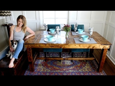 Make your own Farmhouse Table for around $50! DIY tutorial easy enough for a beginner!