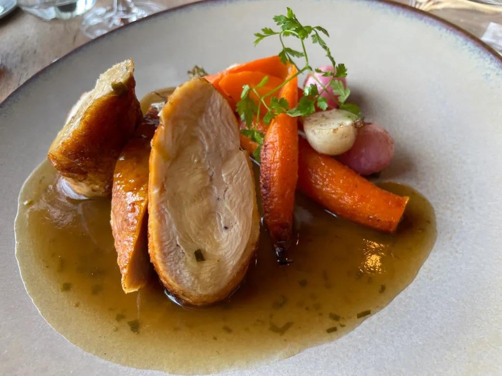 le Suprême de volaille farcie avec ses carottes confites et légumes anciens