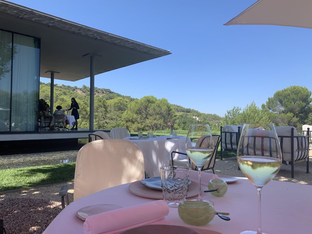 Le lieu est magnifique, au milieu des vignes, le restaurant verrière surplombe le domaine.