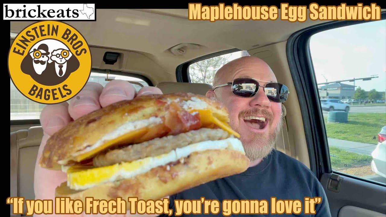 Einstein Bros has an all new Maplehouse Egg Sandwich with cage-free eggs, pork sausage, bacon, cheddar, Honey Almond Shmear and syrup on a fresh-baked Maple French Toast Gourmet Bagel.