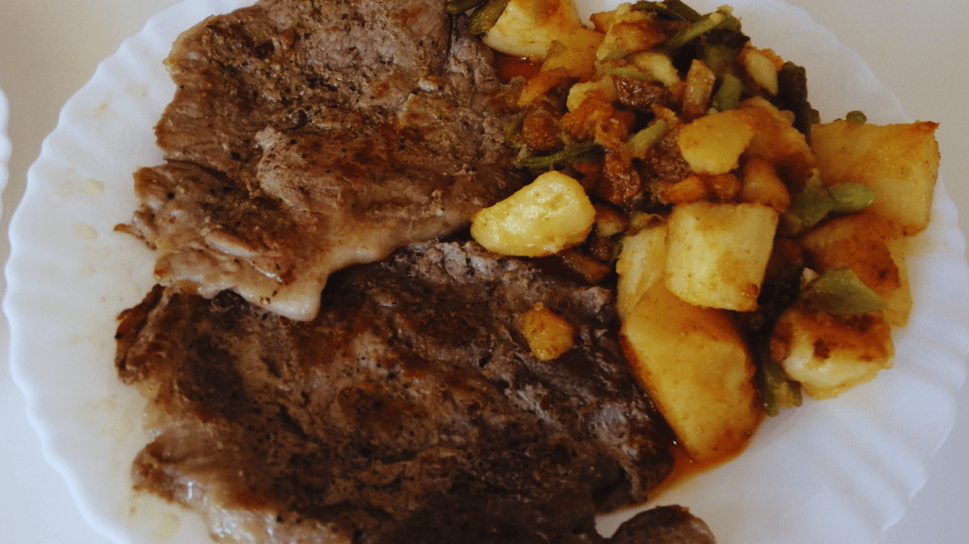 Leftover Boiled Potatoes with Pork Belly Steaks