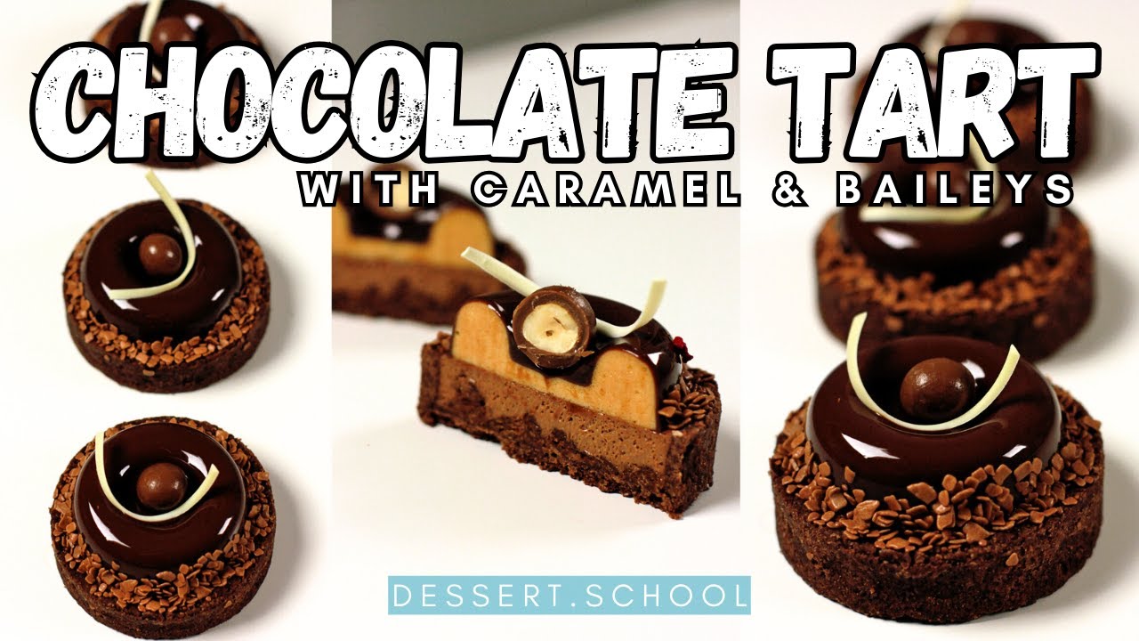 Full recipe is available on our website: https://dessert.school/en/products/modern-tarts-tartlets/chocolate-caramel-baileys-tart