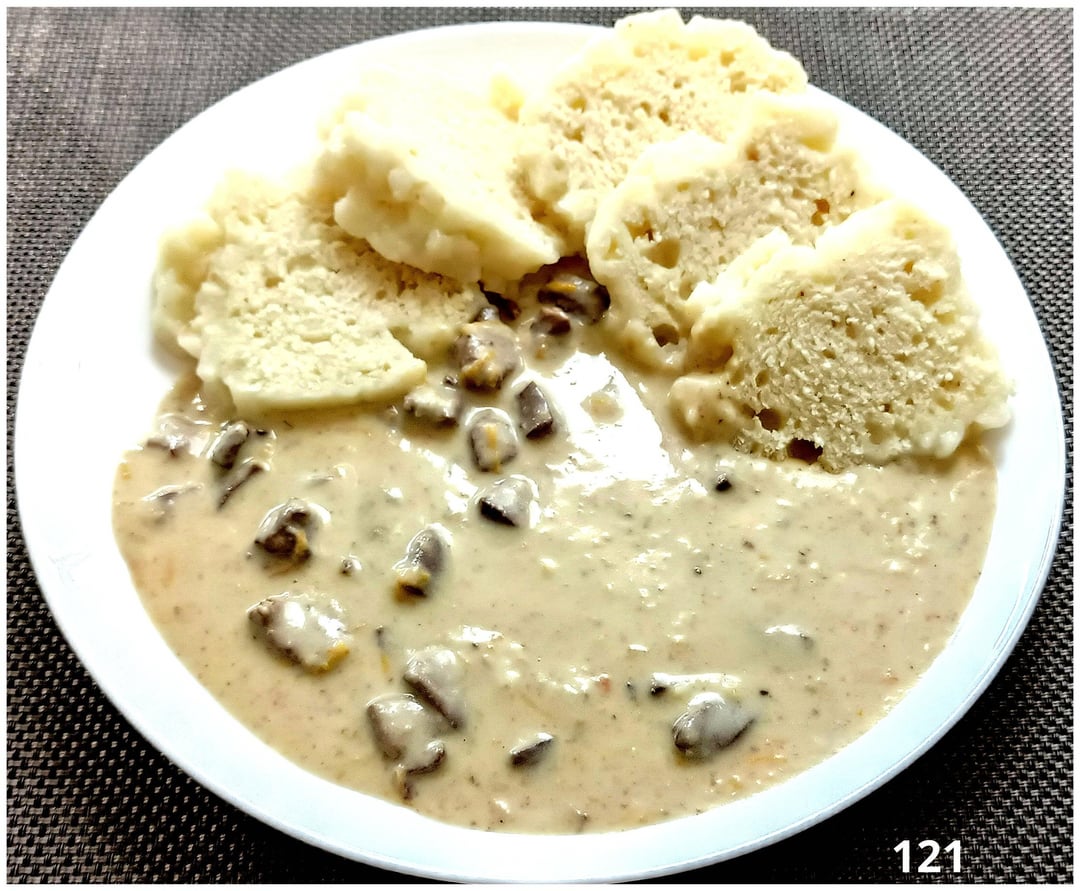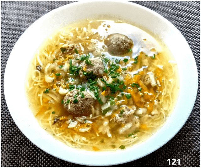 Chicken broth with dumplings and Tyrolean liver (like sirloin) and bourison dumpling. And mom’s bun recipe. Fruit – a mixture of apricots and currants.