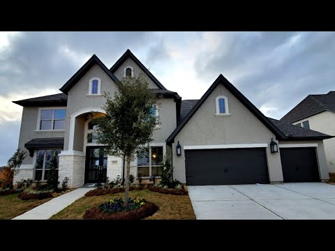 Two-story entry with a circular staircase. Library with French doors and formal dining room frame entry. Spacious two-story family room with hardwood floor features a 19-foot ceiling, corner fireplace and a wall of windows. Island kitchen features a walk-in pantry and a Butler’s pantry. Private master suite features a curved of wall of windows. Master bath includes features double doors, garden tub, separate glass-enclosed shower, dual vanities, a linen closet and a large walk-in closet. Downstairs guest suite with full bath and walk-in closet. Media room with double doors and a game room with storage closet are located upstairs. Secondary bedrooms and a Hollywood bath complete this spacious design. Mud room. Extended covered backyard patio. Four-car garage.