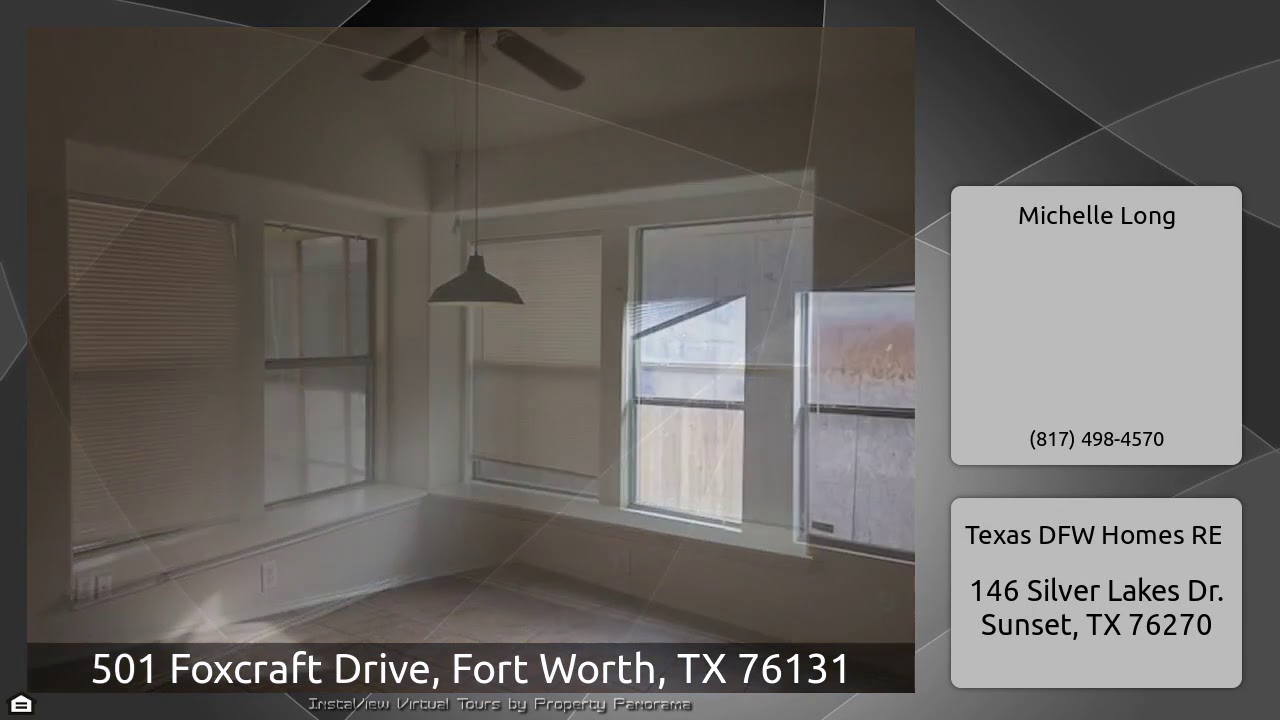 The Virtual Tour for the property at 501 Foxcraft Drive, Fort Worth, TX 76131 listed for $239,900: Other homes for sale by Michelle Long of Texas DFW Homes RE: Corner lot, single story home with laminate wood floors and open concept! Kitchen has beautiful Corian counters, 42-inch cabinets and a breakfast nook with bench seat and chandelier. There is a study at the front of the house with french doors, a game room off of the living room, the formal dining opens to large living room with tile floors, a wood burning fireplace, and ceiling fan that is next to the open kitchen and breakfast area …