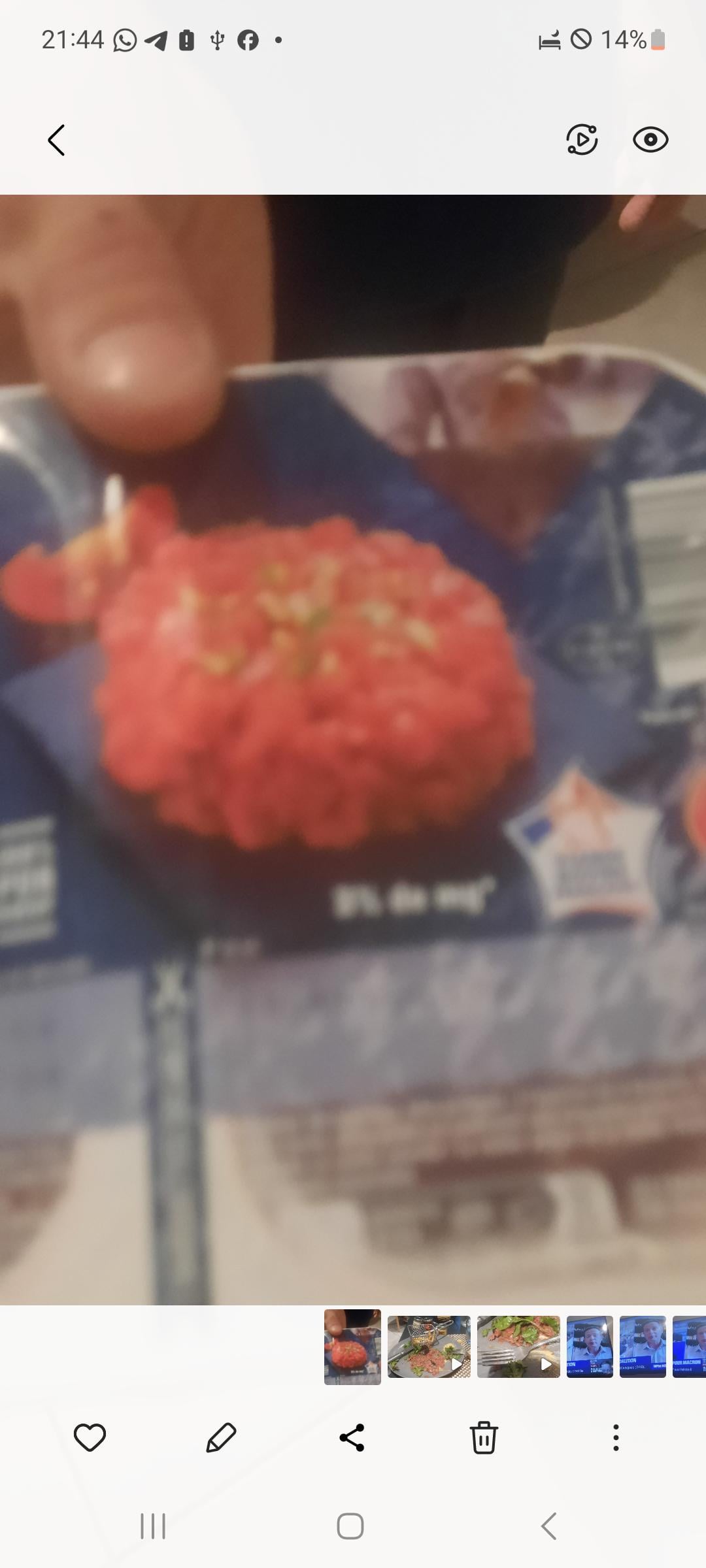 Donc je proteste, le serveur me dit qu il va demander au chef (je voulais un VRAI steack tartare) et revient avec l'emballage que j'ai (mal) pris en photo, en me disant "tenez, regardez, c'est ça qu'on vous a servi, c'est de la viande de tres bonne qualité".