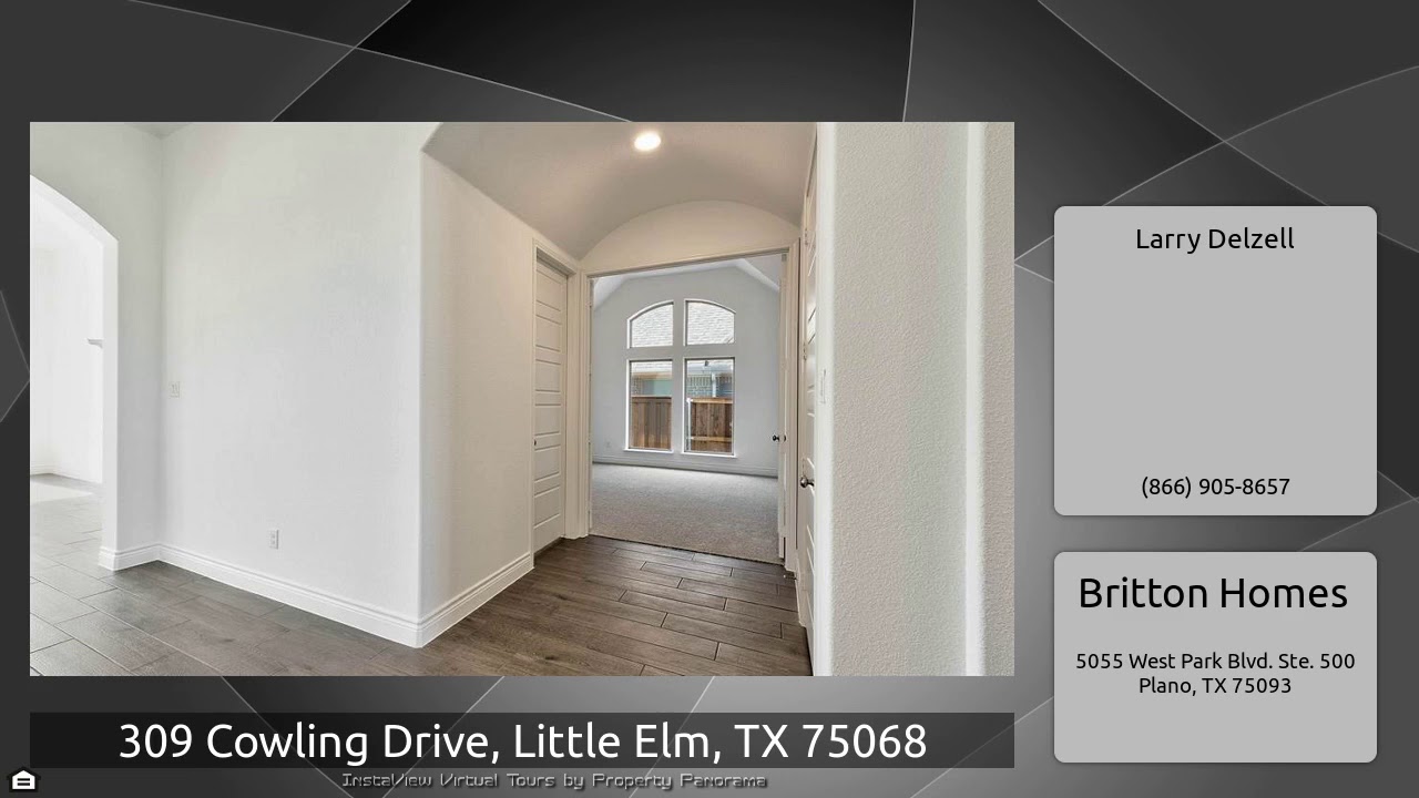 The Virtual Tour for the property at 309 Cowling Drive, Little Elm, TX 75068 listed for $399,900: Other homes for sale by Larry Delzell of Britton Homes: PERRY HOMES NEW CONSTRUCTION! Library with French doors set at entry. Extended entry with 12-foot coffered ceiling leads to open family room with wall of windows. Formal dining room. Game room with double doors and a walk-in storage closet. Family room flows into kitchen and morning area. Kitchen features island with built-in seating space. Spacious master suite. Master bath includes garden tub, separate glass-enclosed shower and dual …