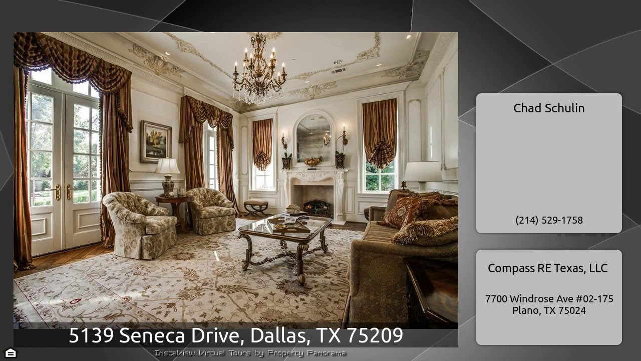 The Virtual Tour for the property at 5139 Seneca Drive, Dallas, TX 75209 listed for $8,995,000: Other homes for sale by Chad Schulin of Compass RE Texas, LLC: Perched upon 2.34 acres of lush, landscaped grounds in the heart of Bluffview sits this incredibly appointed 16,000 SF French Renaissance styled residence. The world renowned architectural team remained true to classic architectural notes while appointing modern day amenities such as a first level private screening room, smart technology features, wine grotto, high end security, elevator, and show garage to name a few. Exterior …