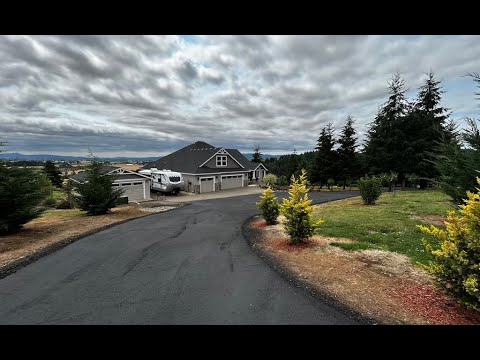 This home was built by Garrette Custom Homes in 2020. The home has had additional 2 car detached garage added for (5+ car garage total). Very expensive landscaping and hardscape added. Large Covered Deck off kitchen Nook and a covered balcony deck off Primary. Views are amazing. Must See. Main Level living with 3003 SQ FT on main floor. 3450 DQ FT total, Primary bedroom and 2 additional bedrooms on the main. Open Great Room concept with gourmet kitchen. Very large primary bath and primary closet. Bonus upstairs could easily be 4th bedroom. Glass french door study/den. Large executive half moon driveway for lots of parking. RV parking and hook ups. Horses are permited (1 horse per fenced acre). HOA to protect values. 12 lot acreage community with all custom built homes. Close distance to Nike, and Intel. 5 minutes to grocery and shopping. Close in but has that so far away feel.