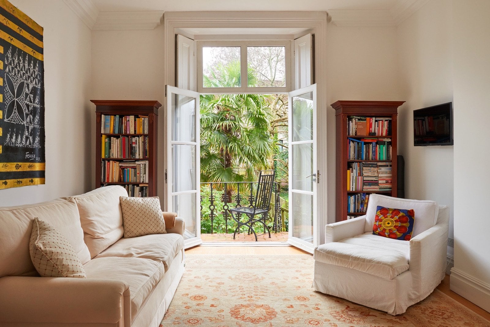 Living room with a small balcony in a Victorian house, Camden, London, UK [1600×1067]