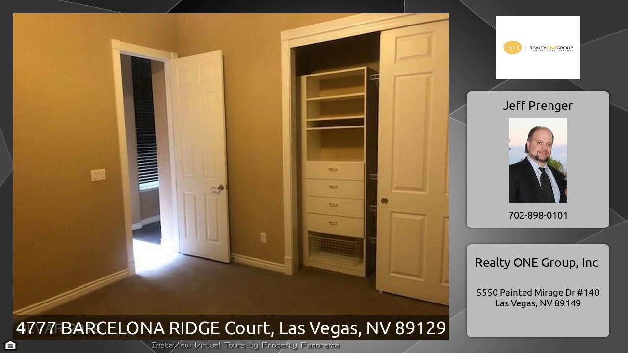 The Virtual Tour for the property at 4777 BARCELONA RIDGE Court, Las Vegas, NV 89129 listed for $549,999: Other homes for sale by Jeff Prenger of Realty ONE Group, Inc: Amazing one story on nearly a half acre lot, in gated Spanish Springs. RV gate, Sparkling pool, covered patio and built in bbq. This is one of two of this model! Highly sought after! Moldings at formal dining room, concrete and tile floors. Office with built ins and french glass doors. Crown molding and built in closets in bedrooms. Jack and Jill bathroom at two bedrooms, granite kitchen with stainless appliances that stay and …