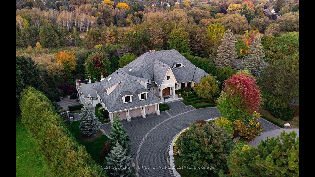 Nestled in the coveted Kingscross Estates! 2.6 acres on a quiet cul-de-sac. Extraordinary 11,300 sq ft French Country, Estate bungalow-loft is surrounded by perennial gardens and the Oak Ridges Moraine. An entertainer’s paradise featuring soaring volume ceilings, with a gourmet chef’s kitchen, built-in custom pantry, adjoining built-in bar and raised walkout terrace, featuring transitional, open concept floor plans. Masterful primary suite with additional 2-bedroom loft complete with separate family room and bath. Completely finished lower level with stunning indoor pool, infrared and wet saunas, steam shower, gym, separate W/D and several walkouts to covered lanai with F/P. Built with unparalleled detail & craftsmanship, this luxury oasis awaits you.