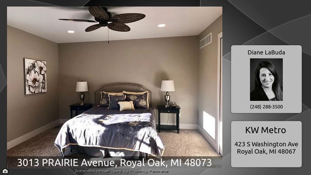 The Virtual Tour for the property at 3013 PRAIRIE Avenue, Royal Oak, MI 48073 listed for $429,900: Other homes for sale by Diane LaBuda of KW Metro: Fabulous New Construction Home in Royal Oak on park size (275ft) Lot. Relax on the covered front porch. Step inside and enjoy the open floor plan with hardwood floors, Office with French Doors, Gourmet Kitchen with stainless steel appliances, granite and tile backsplash, Great room with fireplace and dining room. Backed entrance into mud area with custome lockers Doorwall looks onto deck and extra large yard for you to enjoy. Second floor …