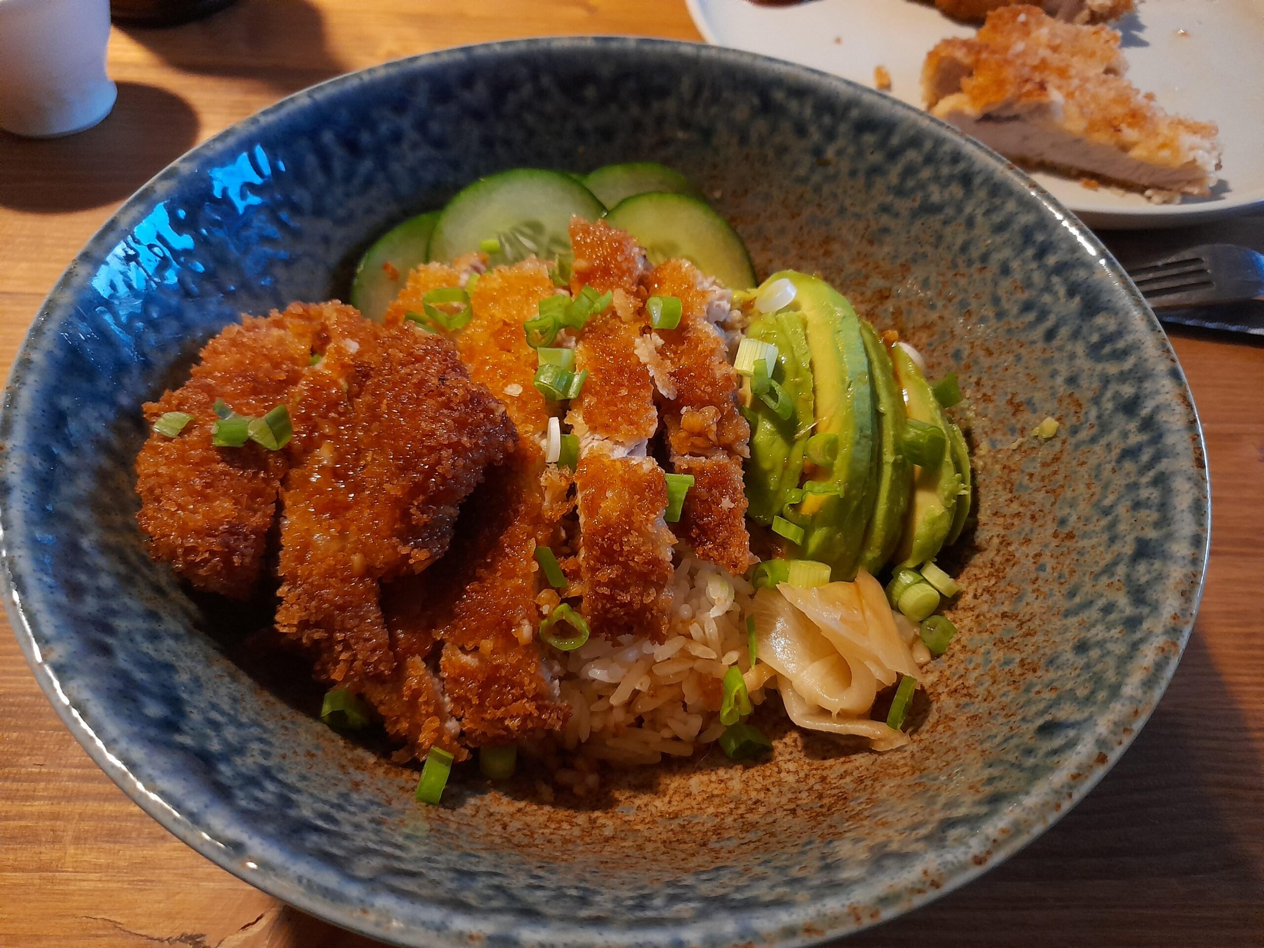 Un poké improvisé avec le katsu au porc au dessus