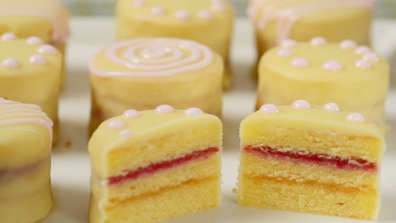 Recipe here: Stephanie Jaworski of Joyofbaking.com demonstrates how to make Petit Fours. For this recipe we’re making Petit Fours Glacé as they consist of three layers of almond cake that are filled with a layer of apricot preserves and raspberry preserves and then covered in a white chocolate glaze. The final touch is to decorate each cake with a drizzling of royal icing.