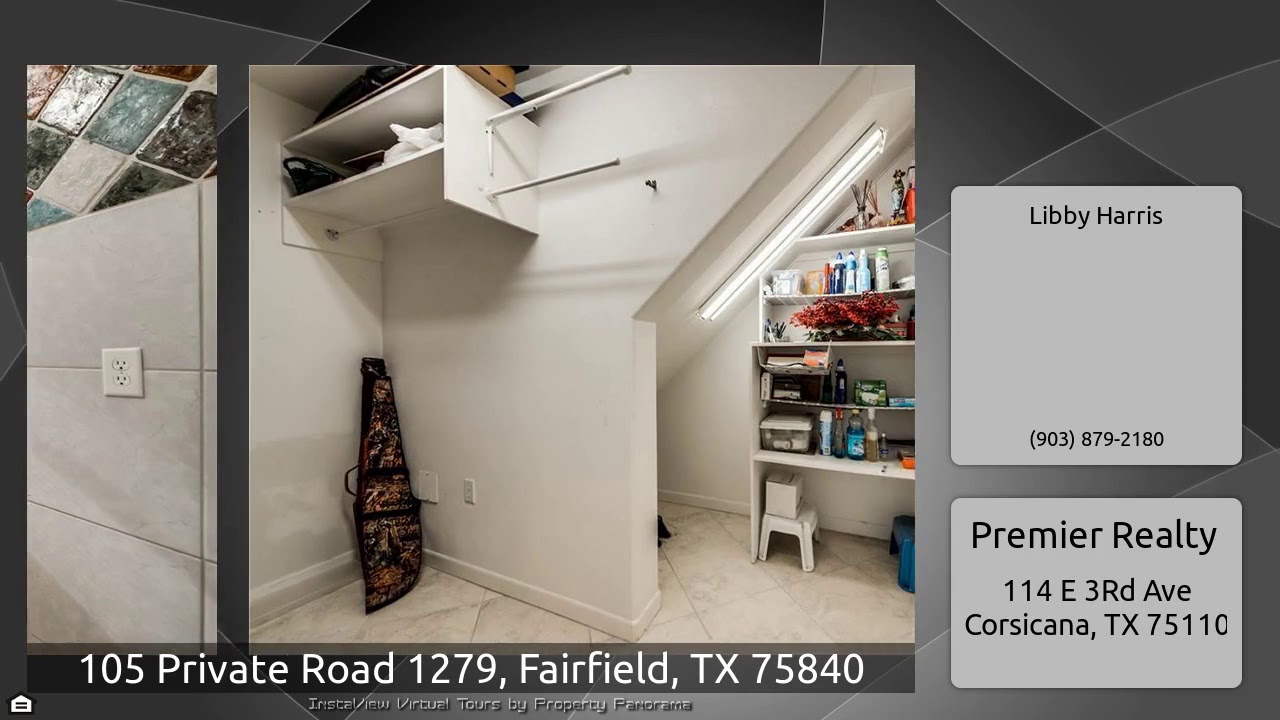 The Virtual Tour for the property at 105 Private Road 1279, Fairfield, TX 75840 listed for $240,000: Other homes for sale by Libby Harris of Premier Realty: Completely renovated in 2009! This roomy, attractive home has soaring ceilings, open concept, living,dining, kitchen. There's a separate den and a separate office both with french doors to patio. It has a great shop, huge yard with room for play time,entertaining. The side yard has a storage building and room for equipment and more. Kitchen has island, granite, builtin microwave, refrigerator, 2 sinks, breakfast bar. The den has a slate …