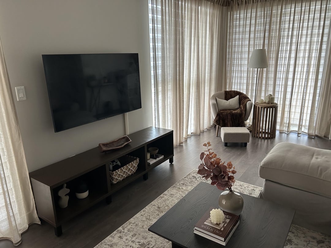 Added a sofa chair, ottoman, lamp, and some decor in the reading corner.