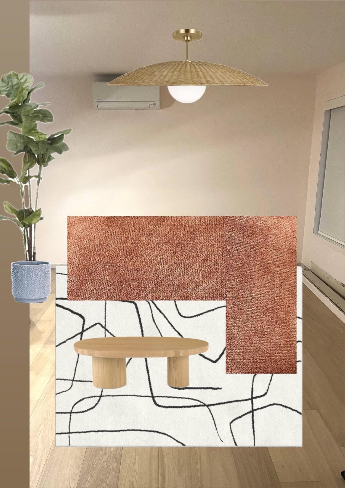 Here's a plan of my future living room. The couch is still in fabrication so it's a picture of the fabric. I am having trouble figuring out what kind of art would look good behind the couch? Or maybe I should only panel the wall with mouldings? 🤔 Also we just changed the floor which is why there's no baseboards yet.