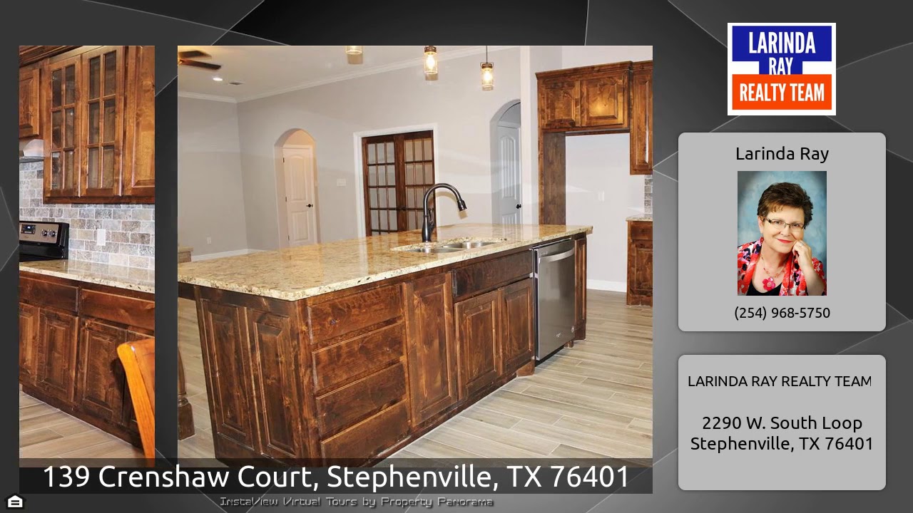 The Virtual Tour for the property at 139 Crenshaw Court, Stephenville, TX 76401 listed for $373,200: Other homes for sale by Larinda Ray of LARINDA RAY REALTY TEAM: This elegant custom 3 bedroom 3 bath 2 car garage home was built in 2018 and has a great open floor plan with an oversized den, kitchen that has lots of custom cabinets with granite and an island. The office or formal dining room has French doors leading from the den. This home has split bedrooms, the 2nd bath also has double vanities, and the 3rd bath is upstairs next to the media-game room. This home has lots of footage and …