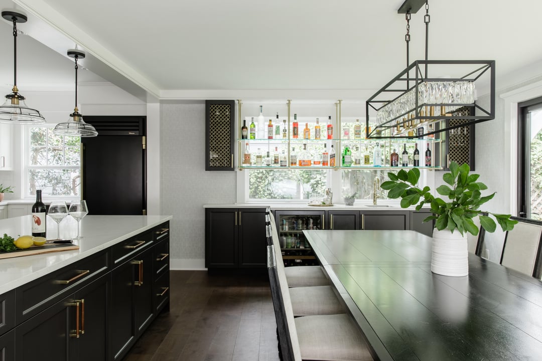 Our 1922 craftsman home had a pretty typical 1922 kitchen – small, utilitarian, very dated, separate from the entertaining space. We love to entertain and everybody wants to hang out in the kitchen, which could fit maybe 2 people at a time. So over 1.5 years of planning and 6 months of construction, we combined our kitchen and dining room spaces and did an addition on the back of the house to create one big open kitchen and dining room space. I’m pretty particular about design and put a lot into the choices. I’m very happy with the result.