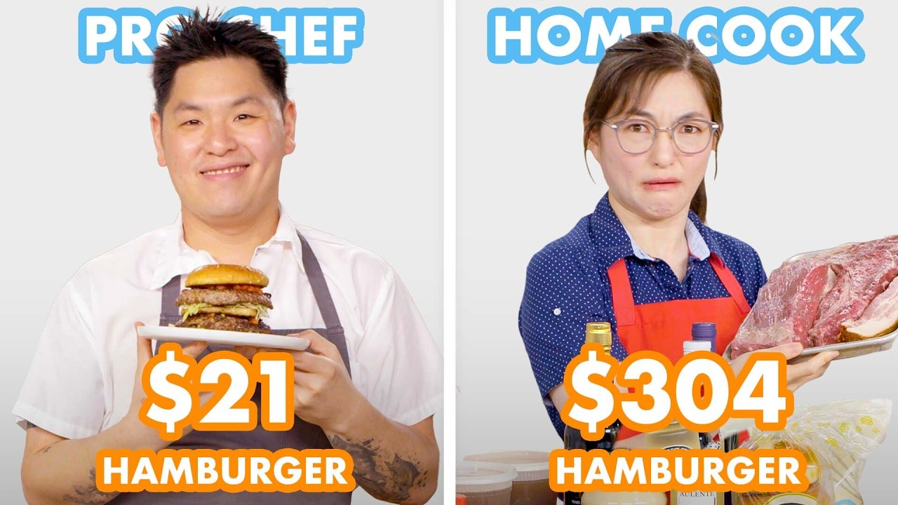Professional chef Eric Huang and home cook Gina are swapping ingredients and hitting the kitchen to make hamburgers. We set Gina up with a whopping $304 worth of ingredients for her attempt at Eric’s luxury recipe. Meanwhile, a modest $21 worth of ingredients was sent back the other way to be elevated into something gourmet by our esteemed pro. Will Gina be able to execute the restaurant-quality burger Eric intended to make? Can Eric transform Gina’s simple ingredients into something spectacular?