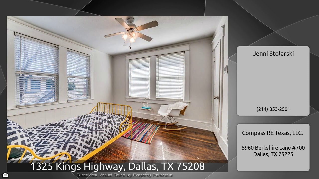 The Virtual Tour for the property at 1325 Kings Highway, Dallas, TX 75208 listed for $449,000: Other homes for sale by Jenni Stolarski of Compass RE Texas, LLC.: Fabulous airplane bungalow in Kings Highway Conservation District. Just blocks from Bishop Arts, TyPo, Kessler Theater, parks & more. Charming front porch welcomes you to the formal living room with decorative fireplace & built-ins. French doors connect to sunny dining room. Open kitchen with custom cabs, marble counters, pantry. Cozy den overlooks shaded backyard. First floor master suite is spacious with dual closets, gorgeous …
