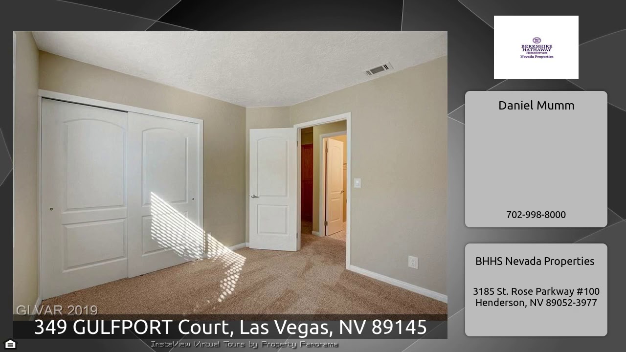 The Virtual Tour for the property at 349 GULFPORT Court, Las Vegas, NV 89145 listed for $324,900: Other homes for sale by Daniel Mumm of BHHS Nevada Properties: Renovated corner lot Beauty!! Located in cul-de-sac in a non-HOA community! This 4 bedroom home features SS appliances in kitchen, tile backsplash and granite countertops. Kitchen opens to spacious living room with fireplace and dining area. Two sets of french doors open to the tranquil backyard which features a fruit tree, garden, and patio. This home is located less than 5 minutes from Boca Park, Whole Foods, and Tivoli Village.