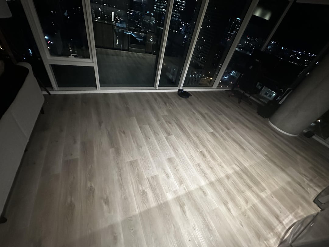 Is your kitchen to the right? If so, I’d put the dining table there. I’d also change out the couch to something L shaped – you’ve got a corner unit with amazing city views and I’d want to talk advantage of that