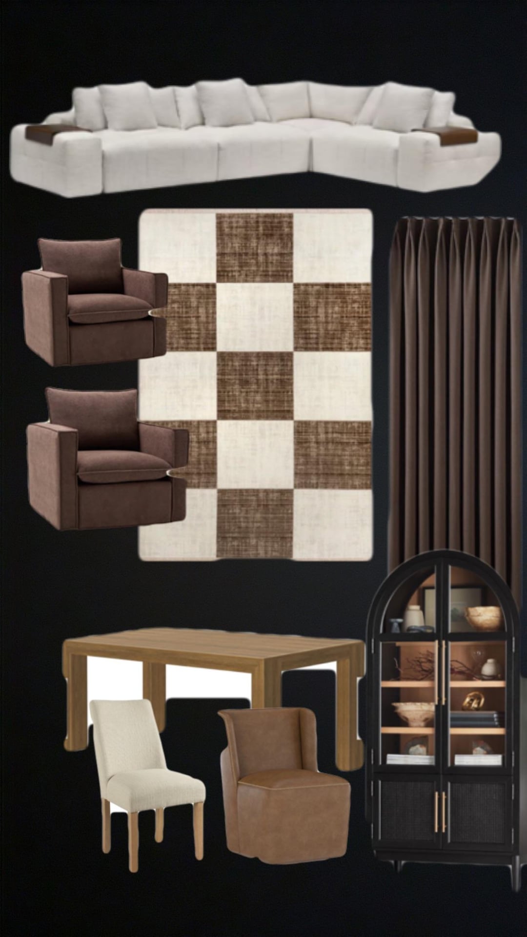 Need help with my family room design. Im not sure if the rug goes with the sofa and accent chairs which I already purchased. Also need a coffee table and accent tables. Please give feedback or attach links for pics of rugs/tables/dining chairs that match. I already have this dining table that will be in the smaller spot of the family room.