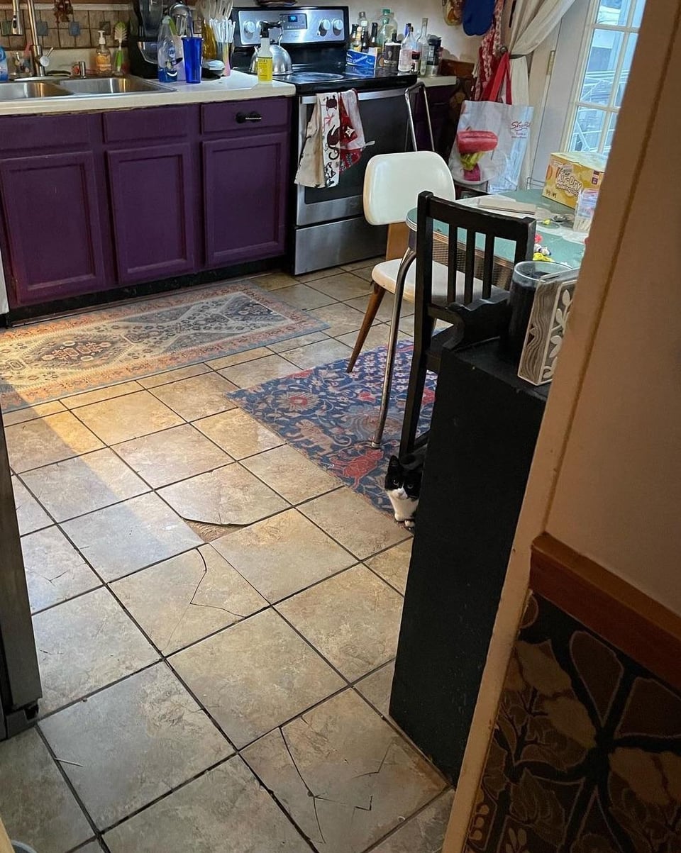 My house is home—beautiful, unique, and about 140 years old, which means it’s both well built and a lot of work. When we bought it the kitchen floor was covered in rotting, smelly linoleum. Limited by budget (but not ambition!) we laid tile, despite a complete lack of any construction/renovation background. Year by year the tiles cracked, making a simple snack run a hazardous obstacle course (like the floor is lava, but in this case the floor is sharp edges).