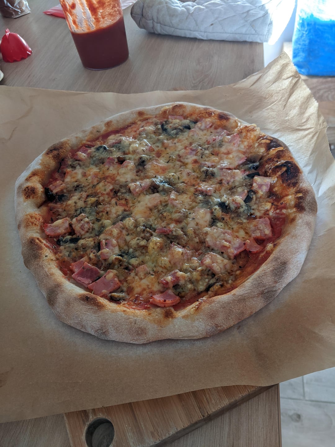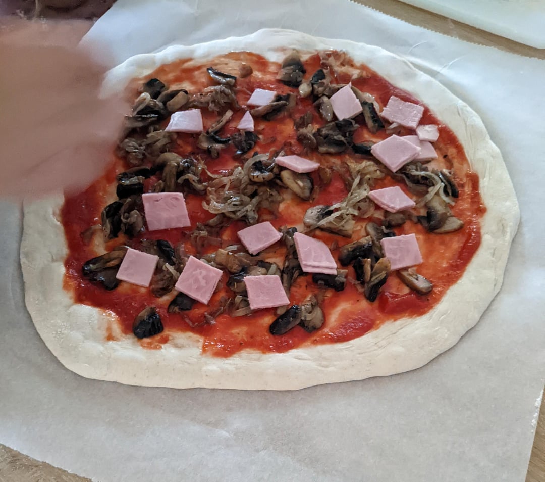 Je passe les détails garniture assez classique : oignons champignons jambon emmental, je ferai plus de garniture qualitative la prochaine fois.