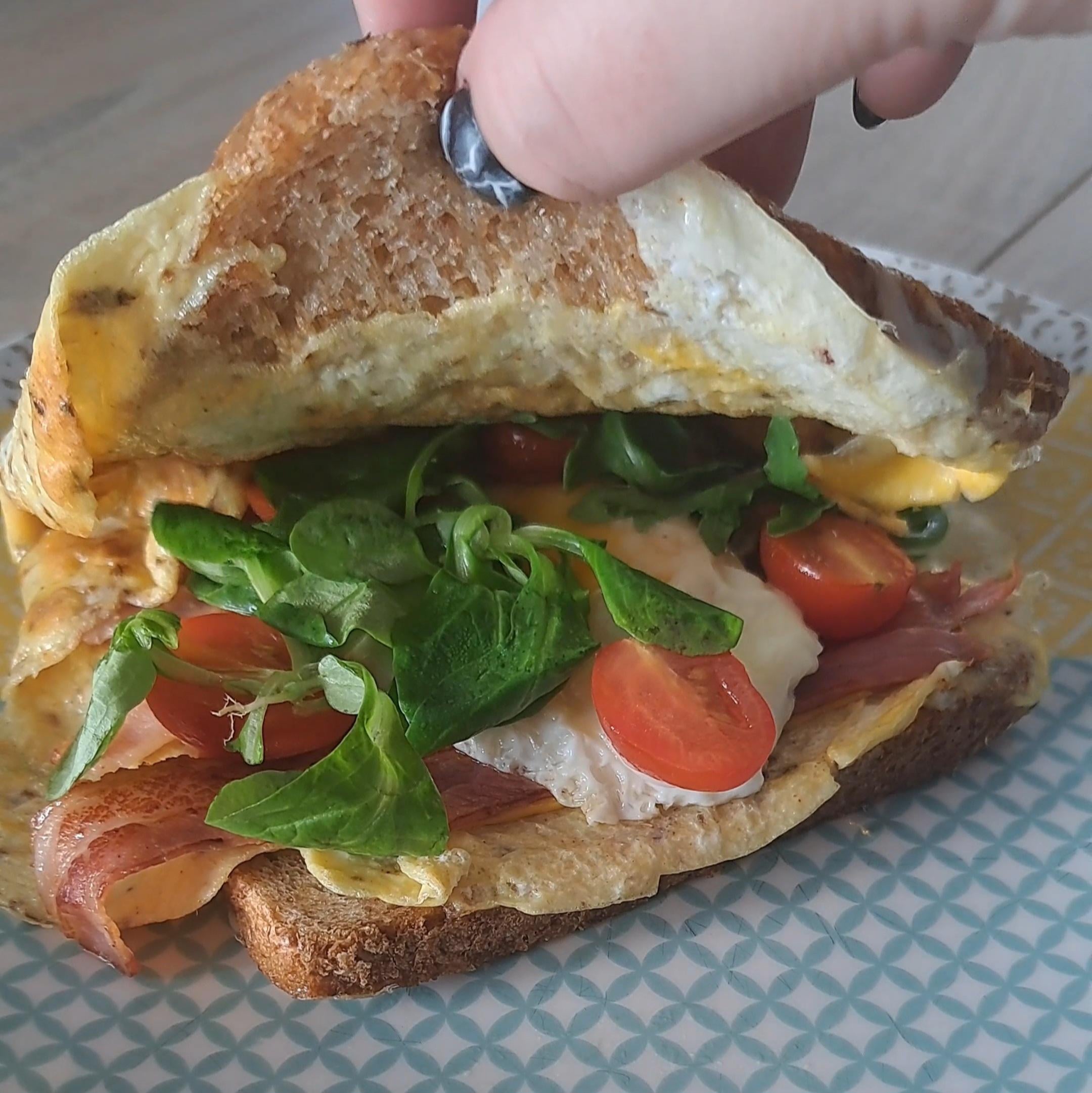 Omelette Toast avec cheddar, bacon, salade, tomates cerises et oeuf au plat . by LylenaEry Bonne BouffeCuisine d'ici et d'ailleursWrite A CommentYou must be logged in to post a comment.