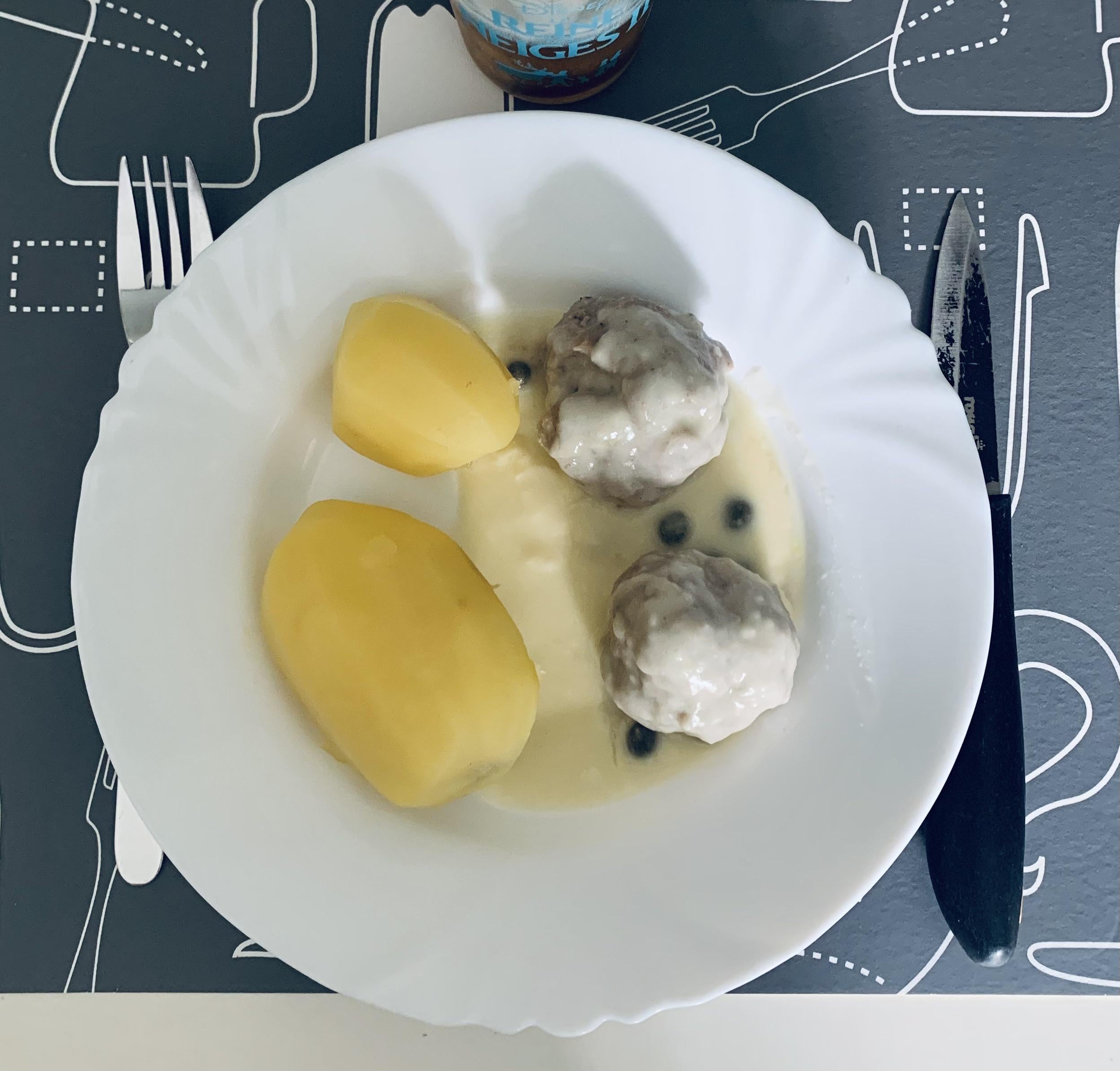 La recette des boulettes de Königsberg : 2/3 de viande de bœuf hachée et 1/3 de jambon blanc haché. Ajoutez 3 œufs entiers, 3 tranches de pain de mie trempées dans du lait, du sel, du poivre et du persil. Formez des boulettes à la main, puis farinez-les. Faites-les cuire dans un bouillon de légumes à feu moyen. Dans une casserole, faites revenir un mélange de beurre et de farine, que vous allongez avec du lait pour obtenir une sauce. Ajoutez du jus de citron et des câpres. Servez le tout avec des pommes de terre vapeur et une bière blonde. 😋