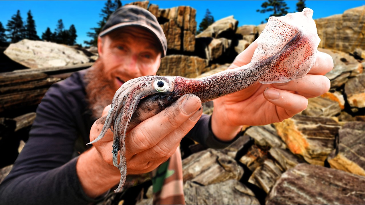 I fish for squid from the dock in the Atlantic Ocean. And we make a dock side shore lunch out of crabs we caught earlier in the adventure in Maine as well as some gourmet calamari cooked up by Zach Fowler in his Catch & Cook Kitchen: https://www.youtube.com/watch?v=msi7i7On81I