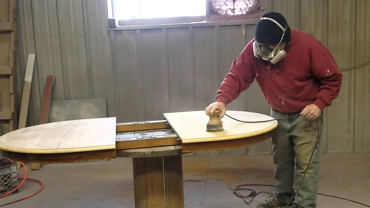 timeless arts refinishing 616 453 8309 grand rapids mi shows owner bruce lach sanding a oak table . with 220 finishing paper .after the table has been sanded,the table is ready to be coated with a sealer coat 4536168309antique refinishingArtsbruce lachCuisineDiningFranceFrenchfrench cuisineFrench diningOakoak tablerefinishingsandsanding topstabletable top refinishingTimelesstimeless arts refinishingVideoVlogYouTube