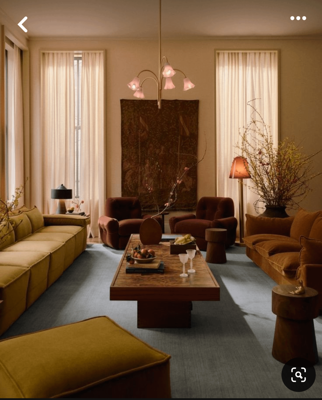 I had a dark blue sofa which kinda sets it's own vibe but I like something more muted and warm.