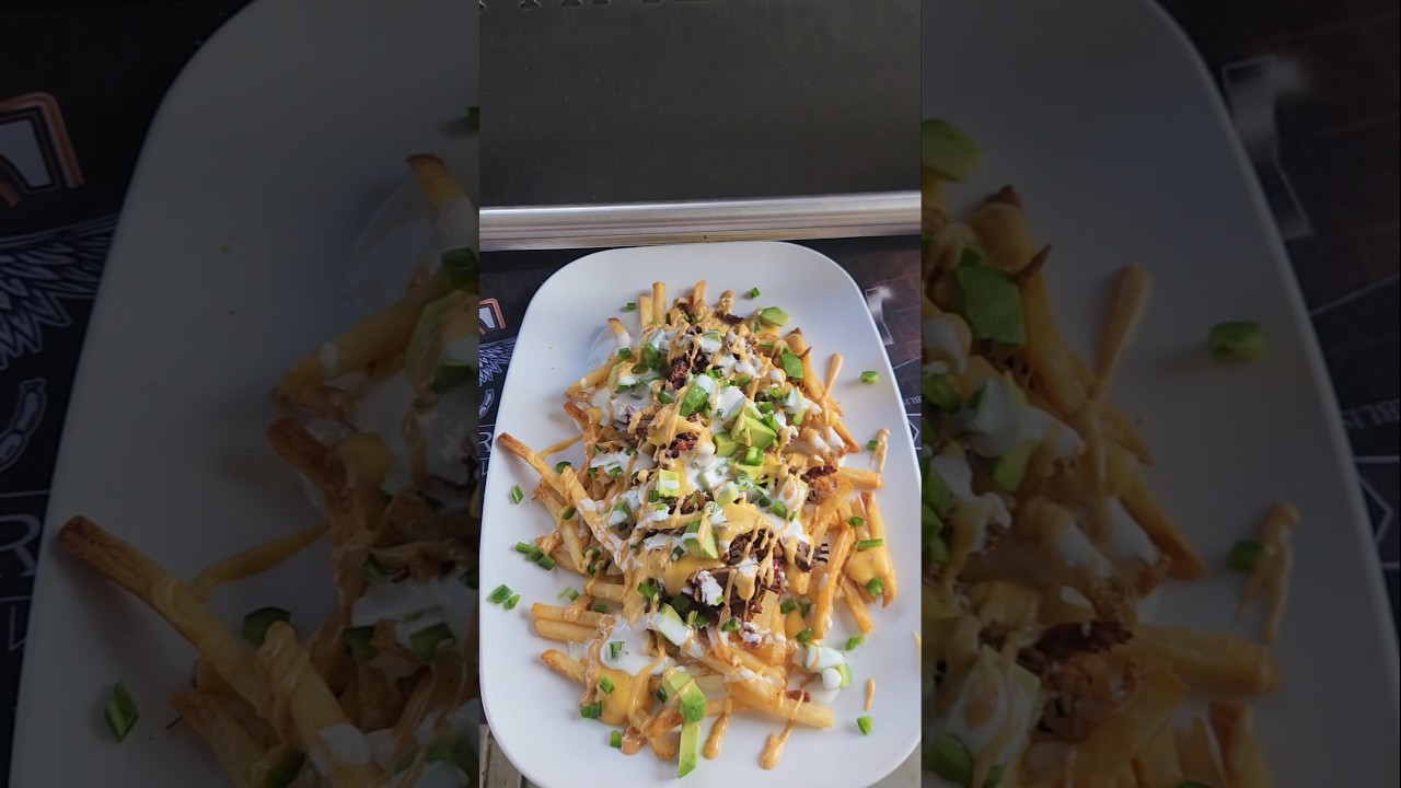 Happy #gameday! If you need a little twist to your game day, try out some nacho fries! I started with a chuck roast and seasoned it with Mccormick Taco Seasoning. It was wrapped and refrigerated for 24hrs before going on the traeger at 225. I jammed in my inkbird probe thermometer and let it smoke away. Meanwhile I took my blendtec and threw in chicken broth, chipotles in adobo, garlic, cider vinegar, lime juice, oregeno, cumin, sea salt and black pepper. I blended it then set it aside until my meat hit 150 internal. At that point I pulled it with my bbqaid spatula and threw it in a cambro High Heat H Pan. I poured my sauce over the top then threw in 2 bay leaves. I put the lid on and returned it to the smoker. When it was over 205 and shreddable, I removed it to cool until it was shreddable by hand. Then I tossed it with cooking liquid and set it aside. I cooked a tray of french fries then started to build. I topped my fries with shredded beef then drizzled it with a homeade nacho cheese sauce. Then it was topped with fresh avacado and jalapeno, then it was drizzled with cacique Crema Mexicana and sirkensingtons Chili Lime Crema before being served.
