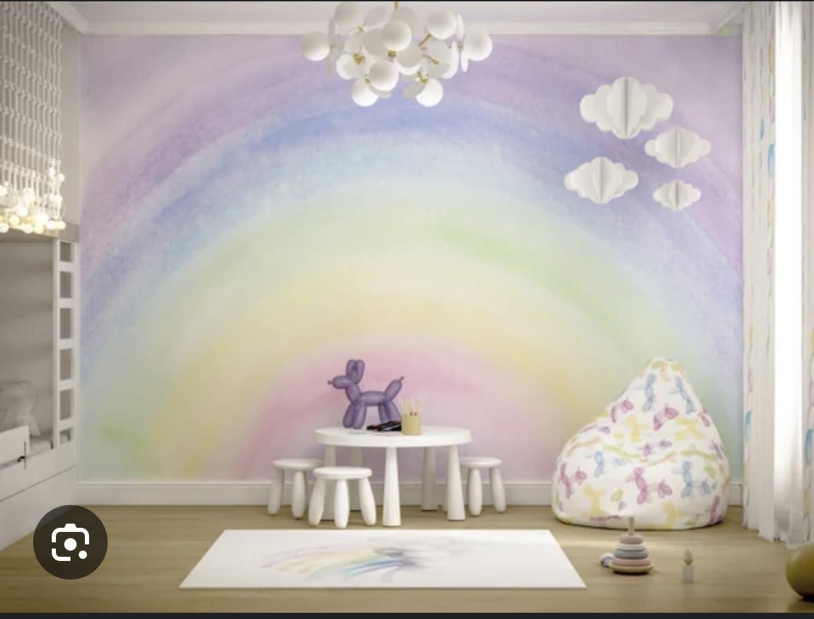I'm a half decent painter, and am redoing my 3 year old daughter's room very soon. I planned on a very simple 6 stripe rainbow, not crisp line edges, but colours seperate, then I came across this image and I'm in love. Do I blend the colours where they meet or leave them seperate. Am I looking at 3 days of painting, and gallons of paint?