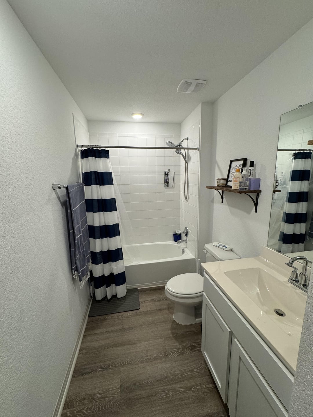 Hey all! I am looking to get some design help with how I can bring some color to the bathroom that can go with the white subway tile. I also want to add some simple wainscoting to the lower half of the long empty wall. There is just too much white for me in a newly built house. I also plan to also remove all the chrome fixtures as well. Any and all ideas are welcome! Thanks!