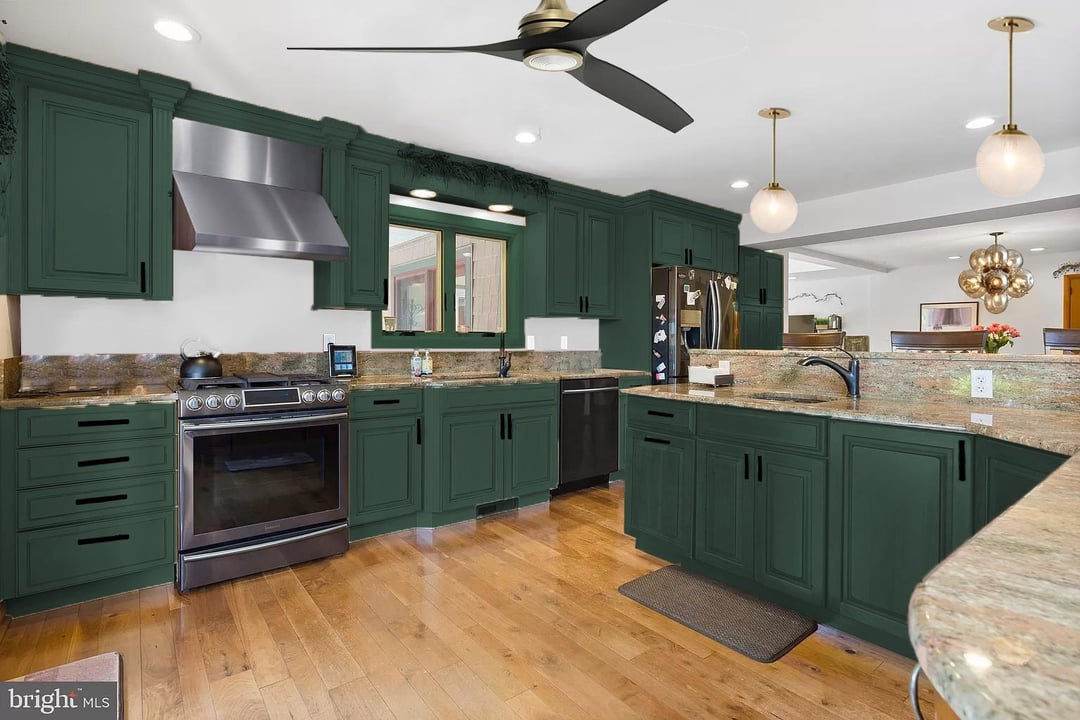 We only really have budget to paint our cabinets right now. I’ve always wanted a dark and moody kitchen, but I’m struggling a bit with the countertops which are orange and brown and rust granite. I’m just trying to pick something that can go well with the countertops