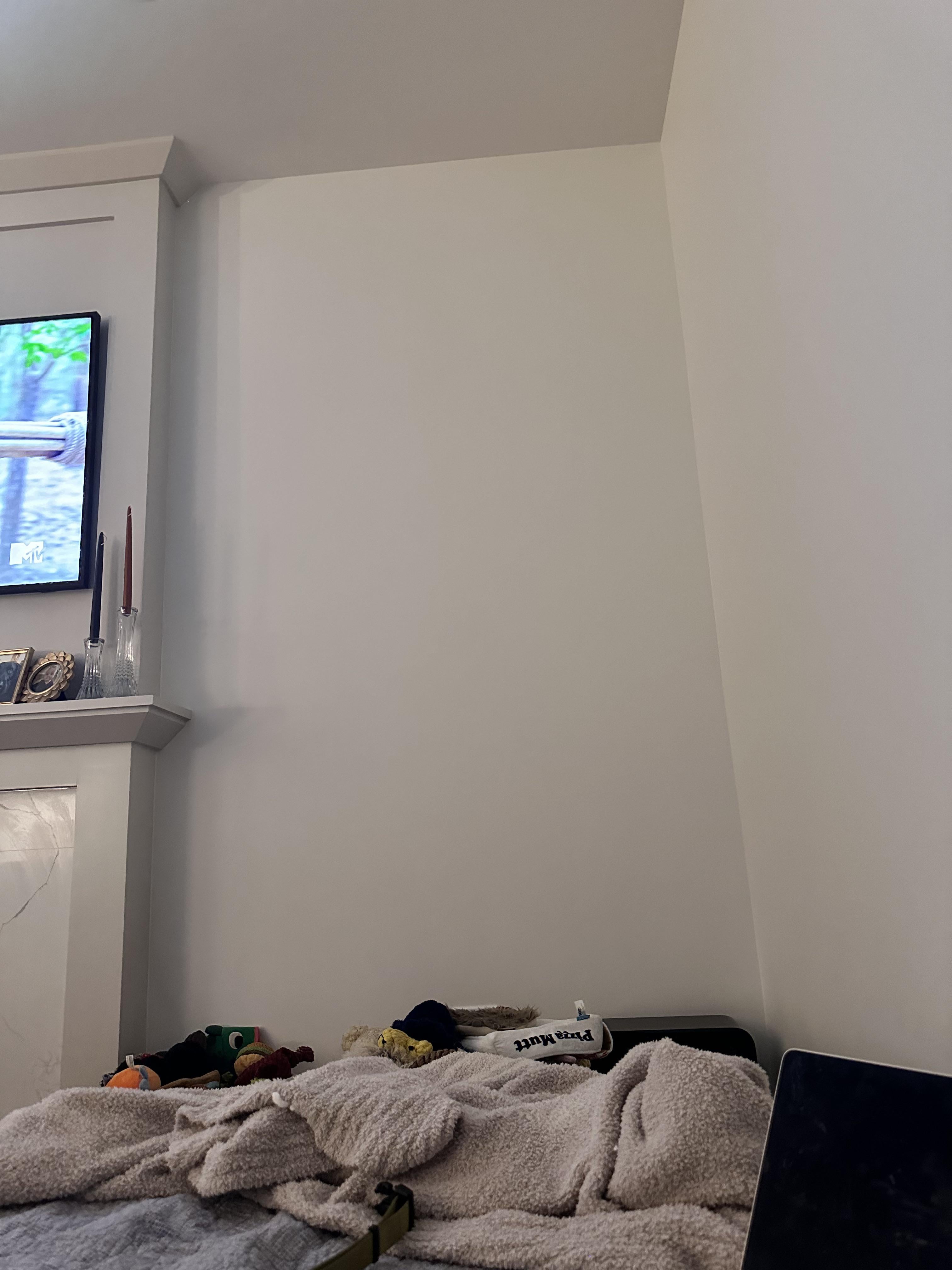 I’d love to put in custom built in shelving but the depth would be four inches and that feels too small. Open to any and all ideas!!
