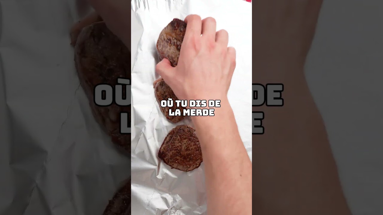 2. Dans une bonne poêle, saisis ta viande (qui est à température ambiante) aller-retour avec ton beurre et ton huile, tu choisis la cuisson mais prends en compte qu’on va les garder au chaud dans un papier aluminium, et qu’elle va donc continuer doucement de cuire