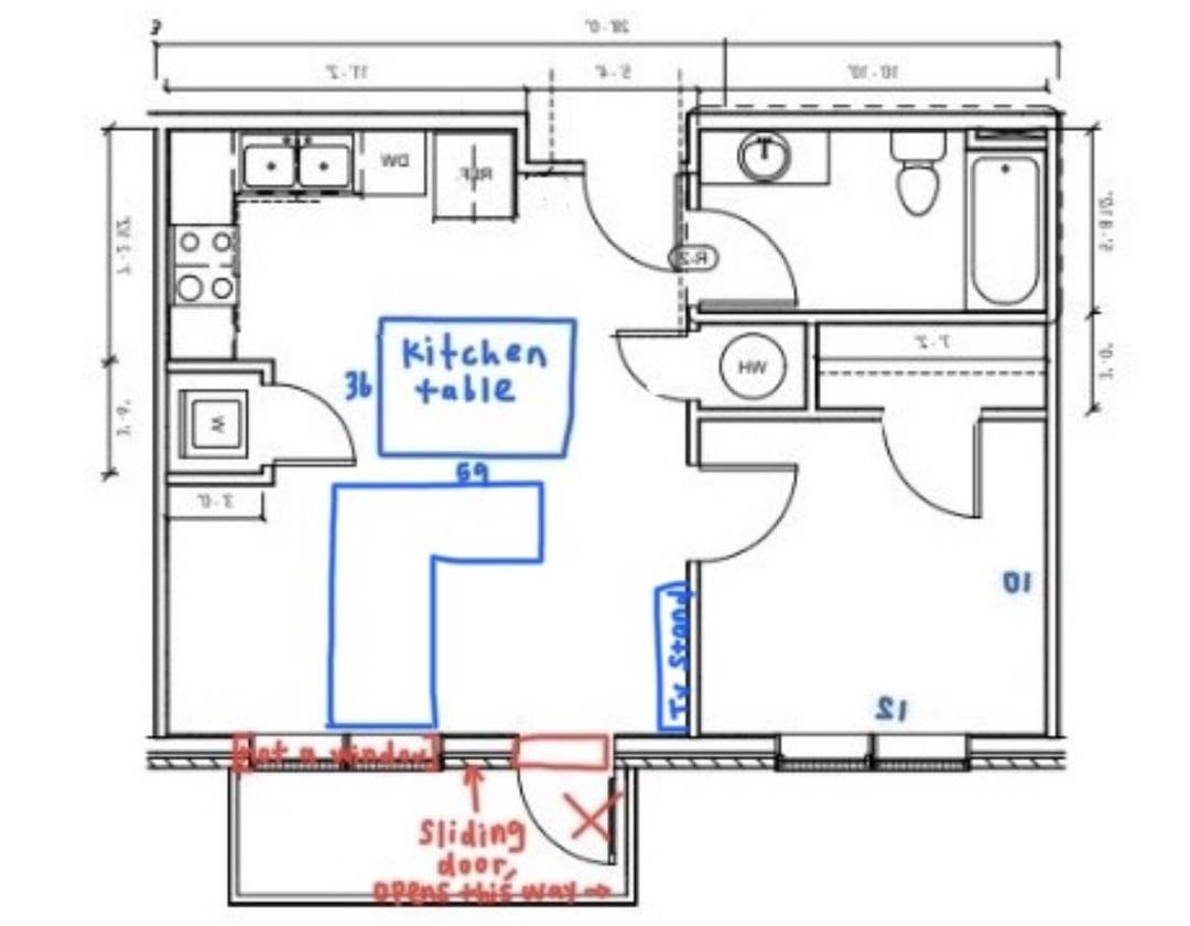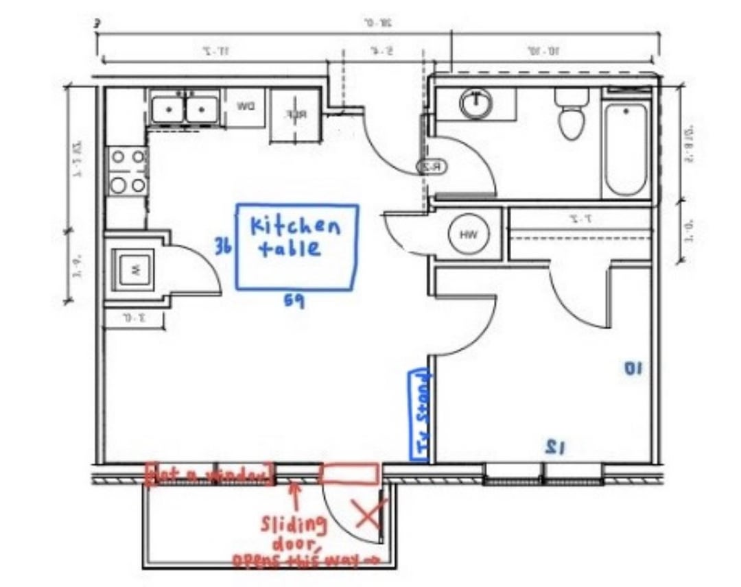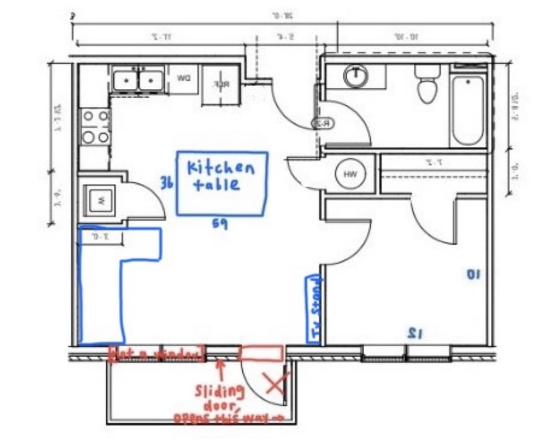 for those who suggest it- if i swap the tv to the back wall, and put my couch where the tv stand is, i think it would end up blocking my bedroom door and also might be weird with the way the kitchen table is right now too.