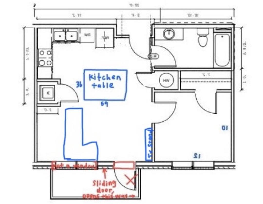i recently downsized apartments and having trouble deciding where to put a couch (i haven’t bought one yet, but prefer the L type chaise couches if possible).