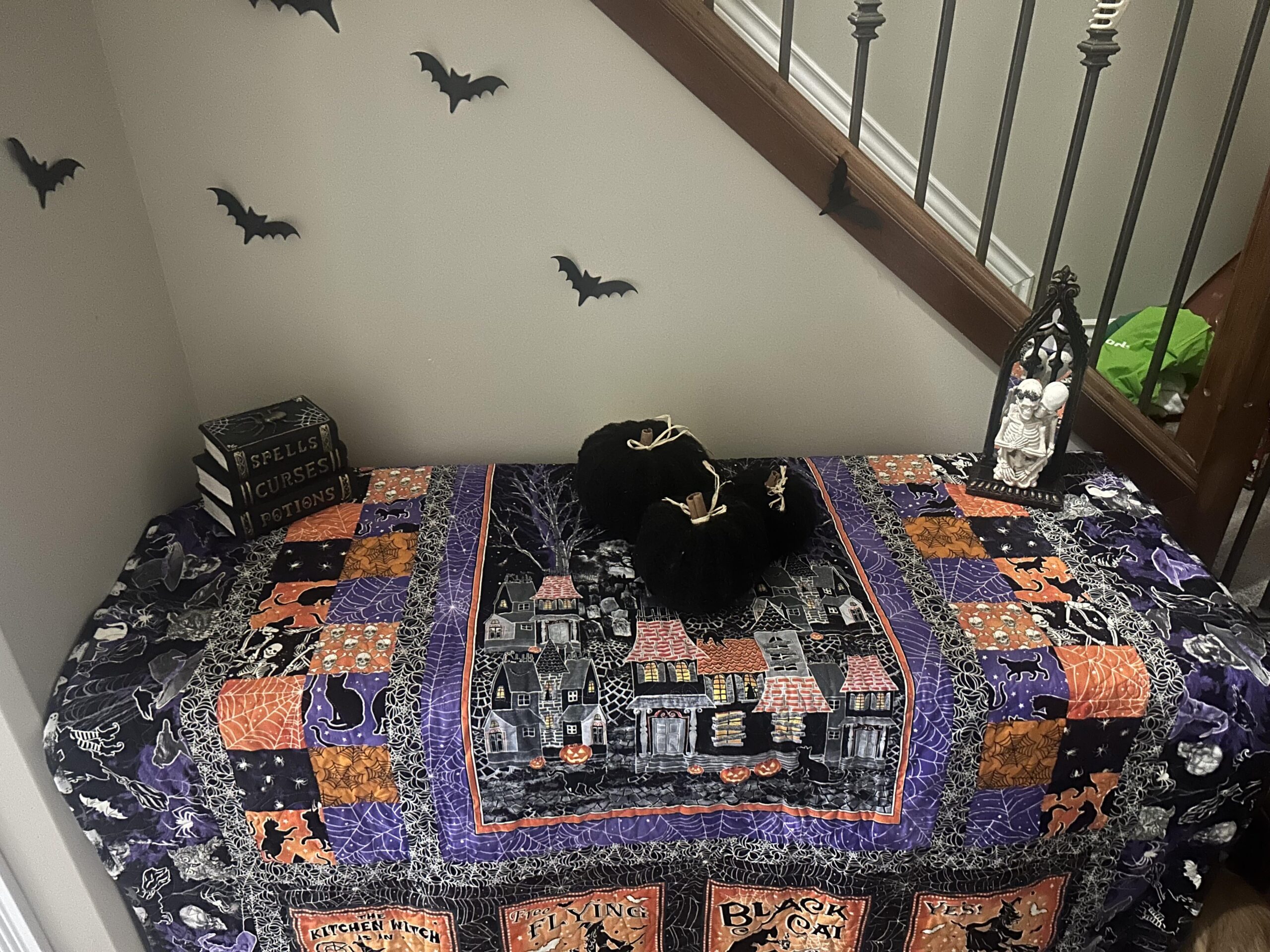 When I decorate seasonally it always look bad to me how do you guys get it to look cool. I don’t want To decorate too much to have clutter but this just looks bad 😂😂 I can remove blanket but I thought the texture would be good but idk lol.. help…