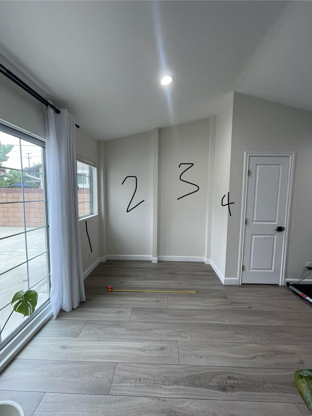 Adding an office nook to the home office and going to have my desk face outward where the measuring tape is so my back is against the wall.