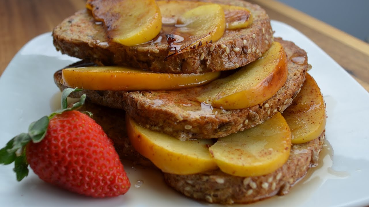 (traduccion abajo) Awesome post workout snack to help replenish muscle glycogen. Certified muscle food! I used Genesis bread and sugar free syrup. Makes 1 or 2 servings. Approx macros for recipe WITHOUT sauteed apples – 445 calories, 47g protein, 44g carbs, 12g fat.